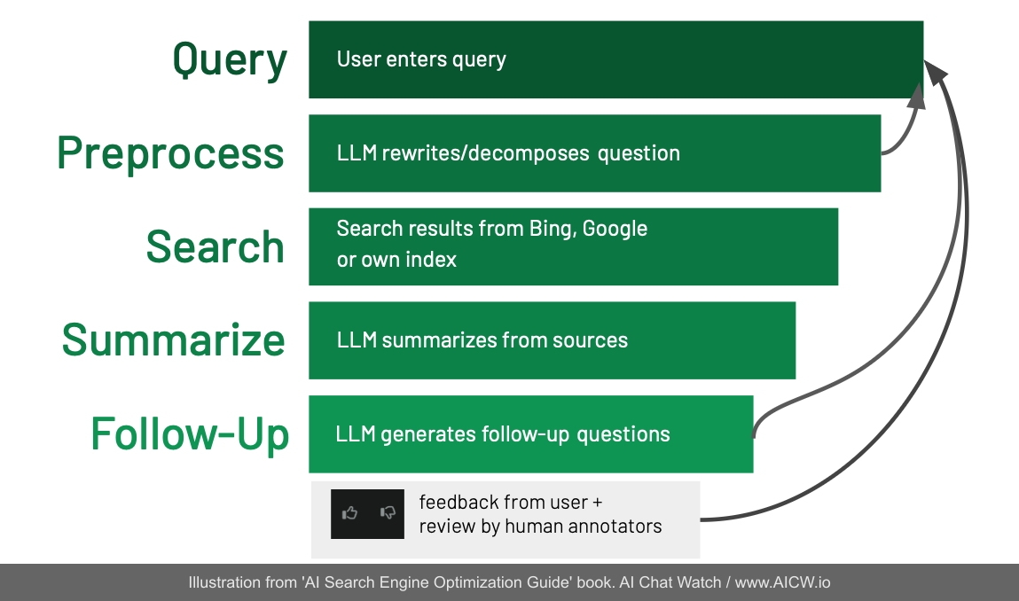 However, the process has quickly evolved into a more sophisticated and multi-stage workflow with built-in feedback loop. Let’s break down the typical journey of an AI search query: