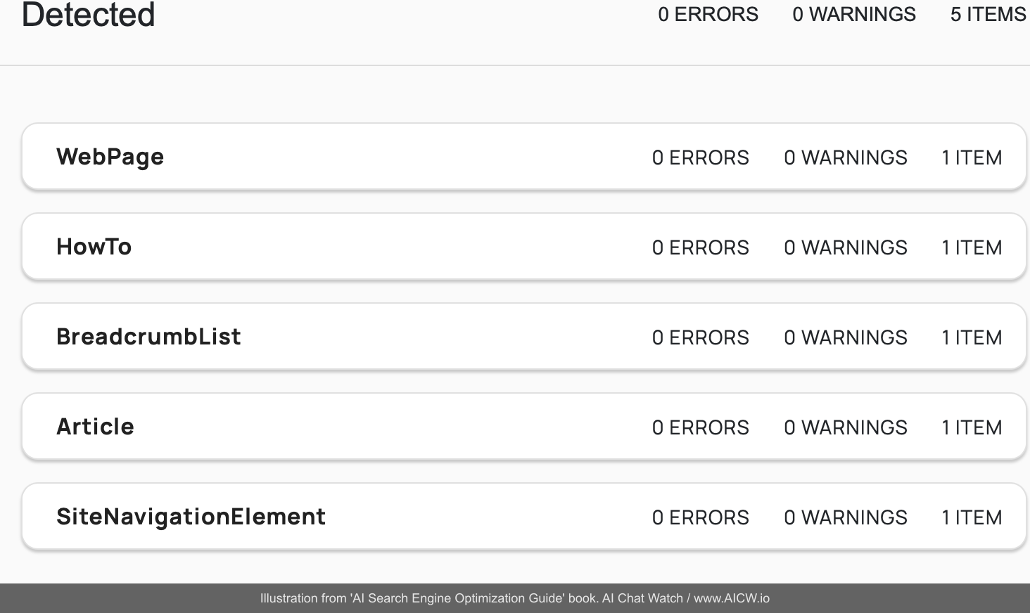 Integrated Structured Data as JSON-LD (Javascript Object Notation - Linked Data**):** Required for conveying meaning of your content almost directly to AI in a machine readable way
